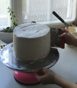 Eingestrichen habe ich die Torte mit ungefähr 125ml geschlagenem Schlagobers.