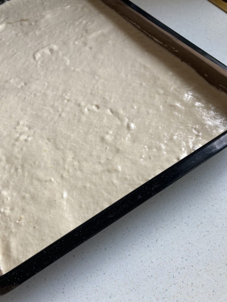 Dann die Masse auf dem Blech oder in der Tortenform verstreichen.
